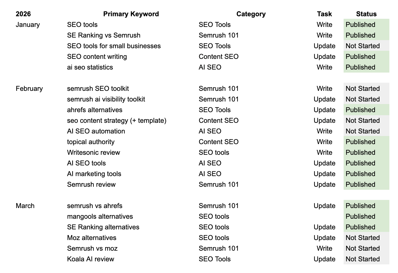 The start of the year has been slow because of ranking volatility, but I'm staying consistent.