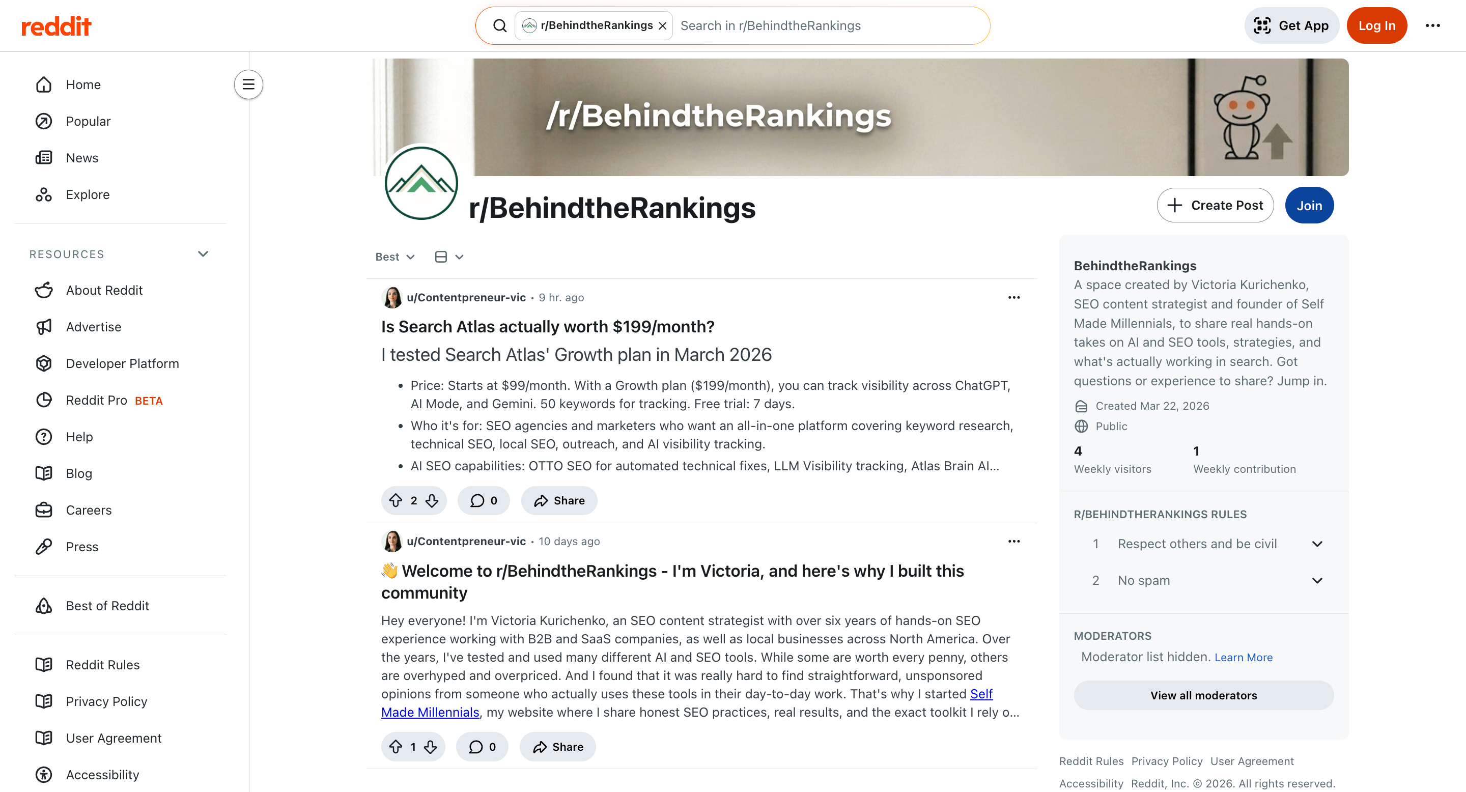 I also launched a new subreddit with the same name as my newsletter to keep the branding consistent: Behind the Rankings.