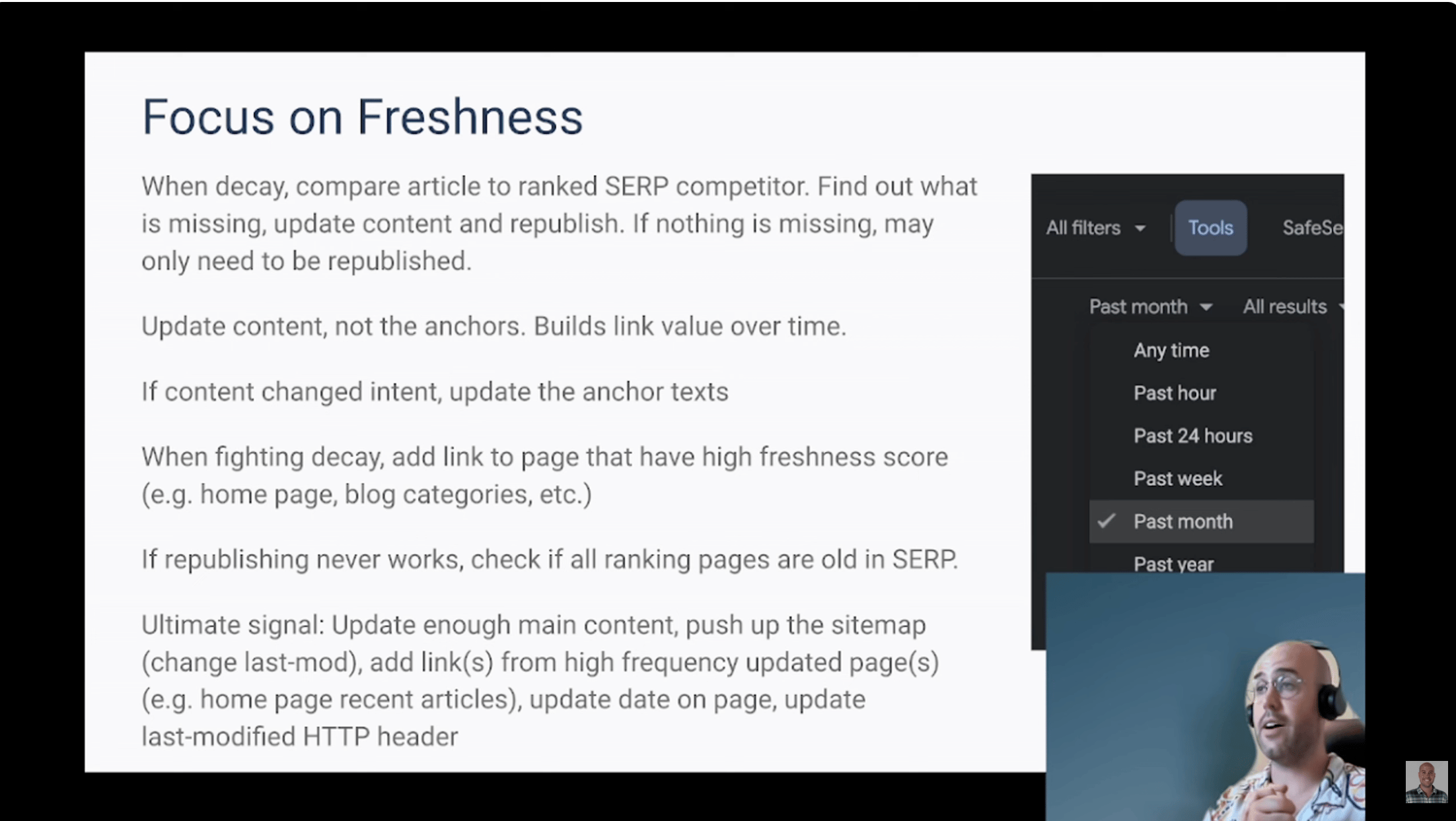 Below, I’ve included a screenshot from the video that does a great job summarizing the idea of content freshness and how it may work.