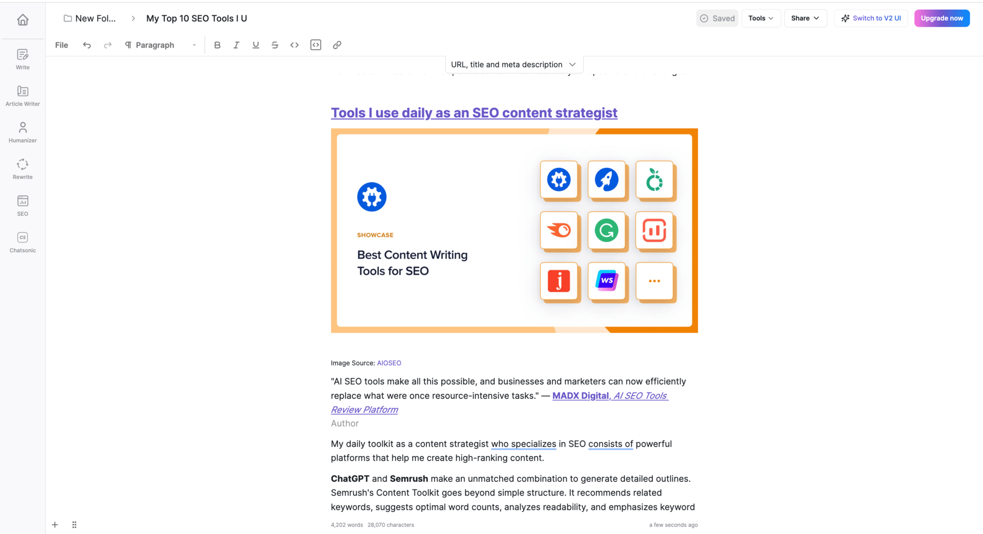 I’ve already started testing this idea out this week using the Writesonic AI SEO tool.