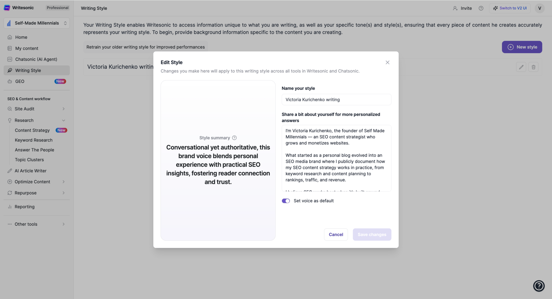 Writesonic lets you upload all this information to customize your writing style, which is really great.