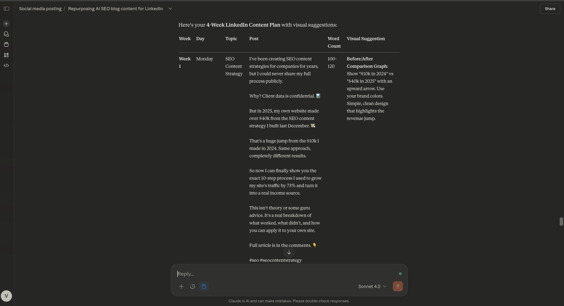 Besides SEO content, I’m also exploring how to automate repurposing my best blog posts into LinkedIn content that actually sounds like me.